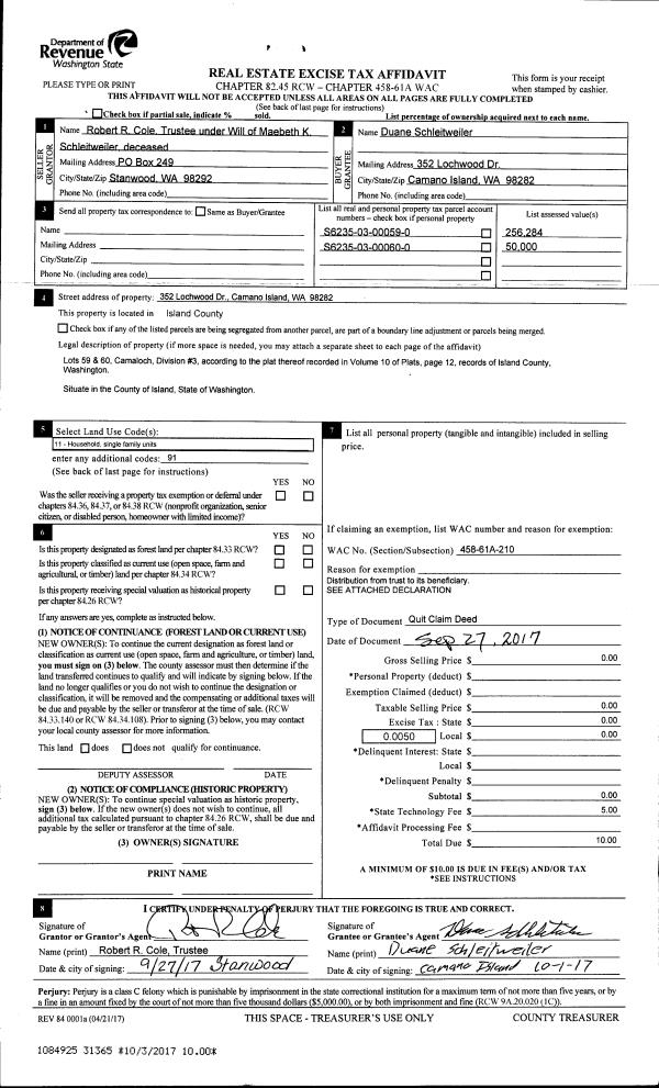| Mailing Address: | 662 SW ERIE ST OAK HARBOR, WA 98277 | % Ownership: | 100.0000000000% |
