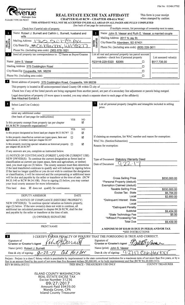 | Mailing Address: | 327 NORTHEAST REGATTA DR OAK HARBOR, WA 98277 | % Ownership: | 100.0000000000% |