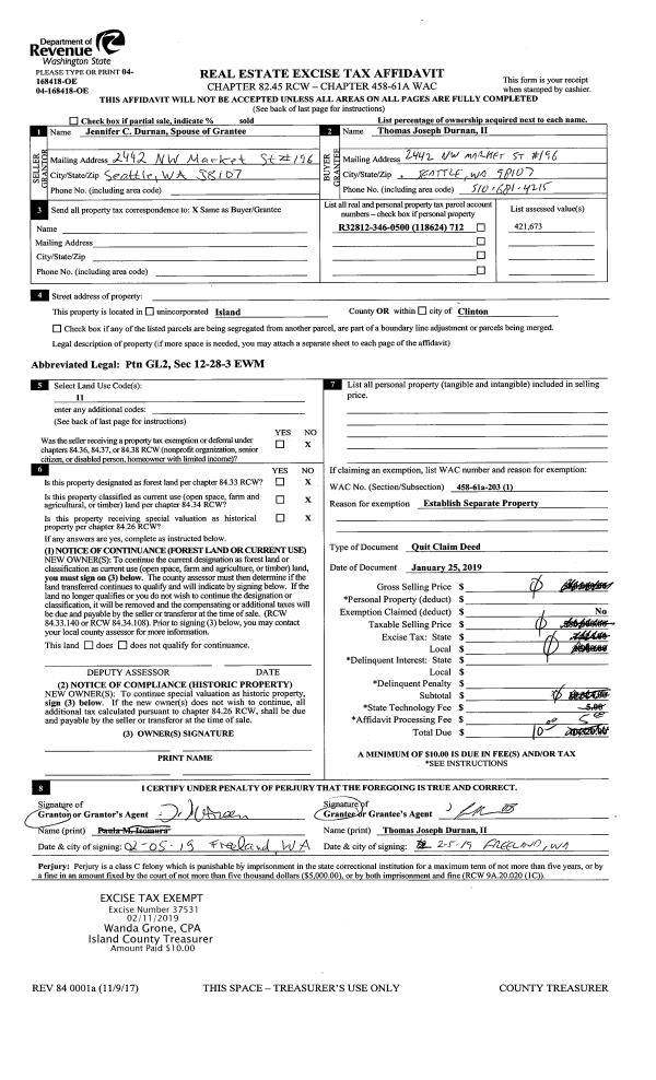 | Mailing Address: | ELIZABETH SUMPTION 2212 QUEEN ANNE AVE N #815 SEATTLE, WA 98109 | % Ownership: | 100.0000000000% |
