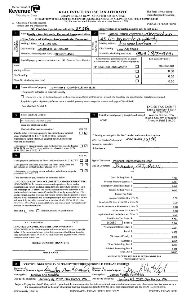 | Mailing Address: | BARBARA E GOHLKE 3539 MARINE VIEW DR GREENBANK, WA 98253 | % Ownership: | 100.0000000000% |