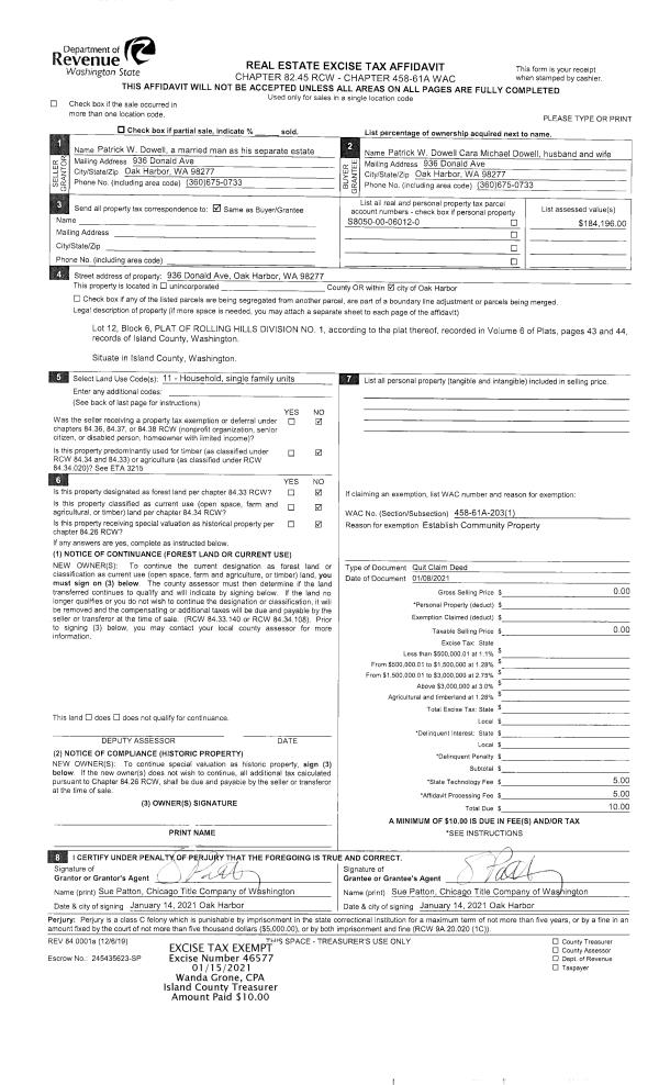 | Mailing Address: | 3536 SEASHORE AVE GREENBANK, WA 98253 | % Ownership: | 100.0000000000% |
