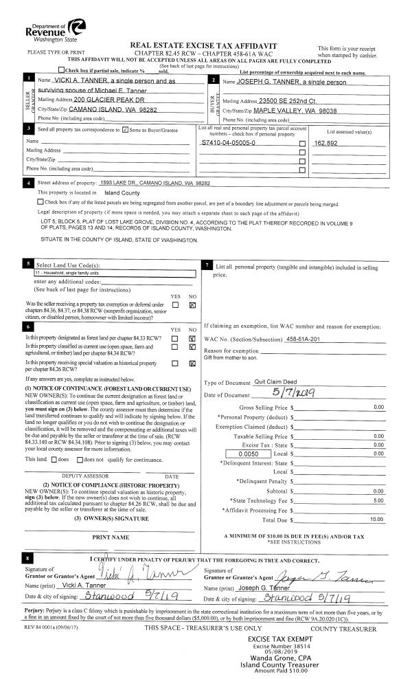 | 3 | 06/17/2019 | QCD | Quit Claim Deed | SCHERER, LISA S | SCHERER TTEE, LISA | | | $0.00 | 39025 | 4465618 |