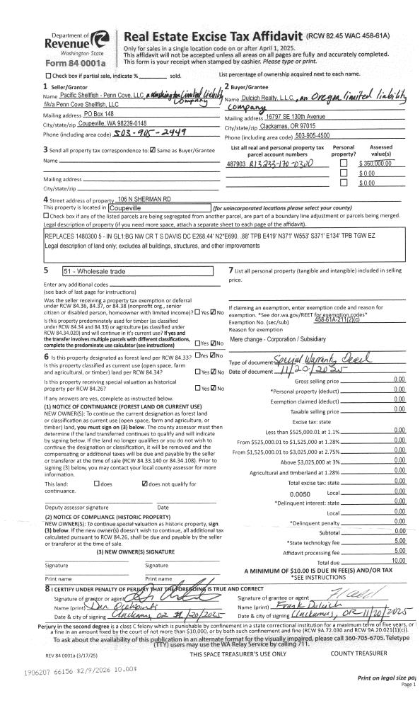 | POCOUP | Port of Coupeville GEN | 0.1093371703 | $543,980 | $543,980 | $59.48 | | |