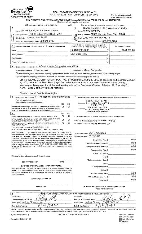 | Mailing Address: | PO BOX 1533 FREELAND, WA 98249 | % Ownership: | 100.0000000000% |