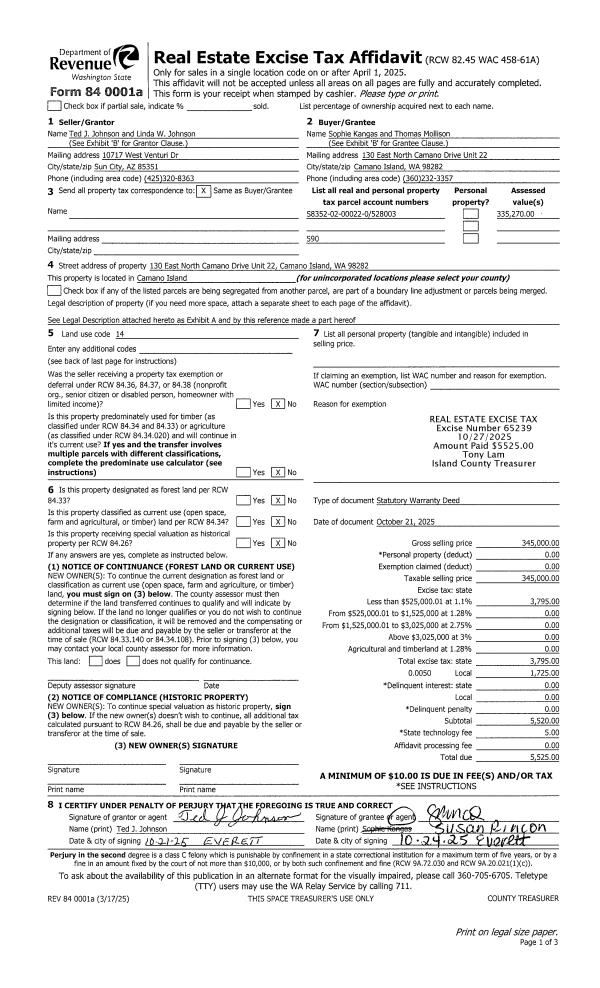 | 1 | 03/13/2025 | WD | Warranty Deed | FORSTER TRUSTEE, FREDERICK J | HUNT, DANA | | | $500,000.00 | 62812 | 4583259 |