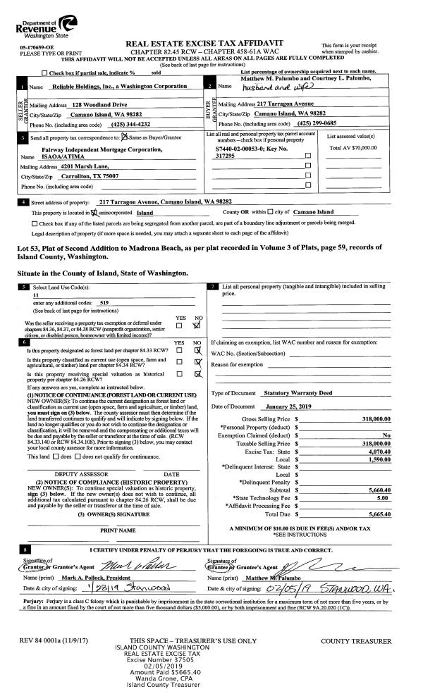 | 1 | 02/11/2019 | WD | Warranty Deed | MORTENSEN, MARTA DWAN | BARNES, DEREK S | | | $710,000.00 | 37618 | 4459396 |