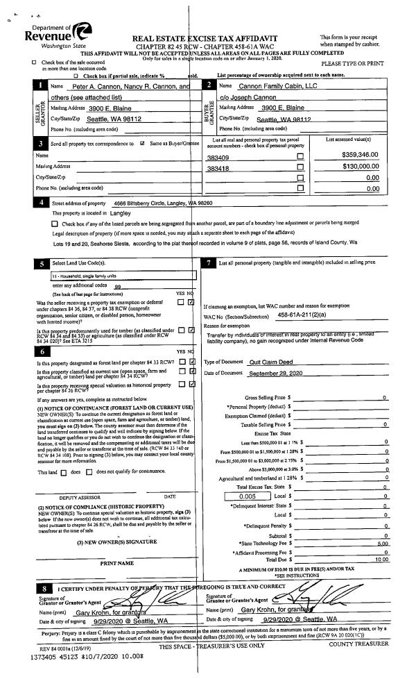 | Mailing Address: | JENNIFER L MOSTAFAVINASSAB 3510 SHADY GLEN LN GREENBANK, WA 98253 | % Ownership: | 100.0000000000% |
