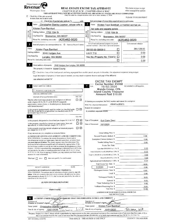 | Mailing Address: | KAREN HATCH 7210 7TH DR W EVERETT, WA 98203 | % Ownership: | 100.0000000000% |