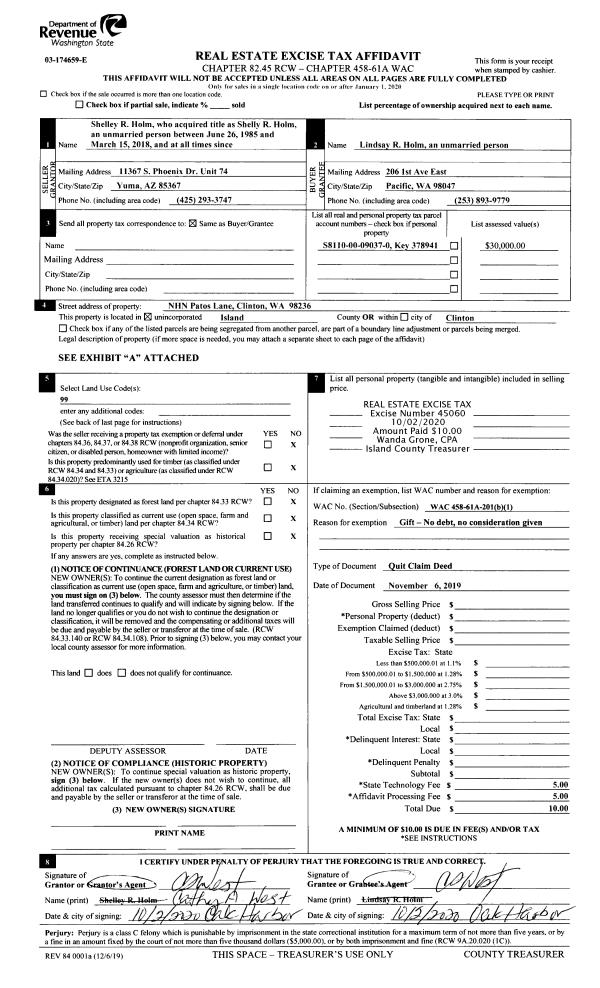| Mailing Address: | 3710 SMUGGLERS COVE RD GREENBANK, WA 98253 | % Ownership: | 100.0000000000% |