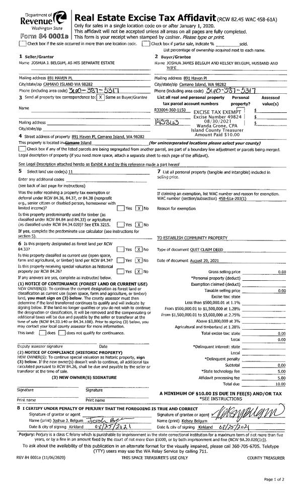 | Mailing Address: | 14888 STATE ROUTE 525 LANGLEY, WA 98260 | % Ownership: | 100.0000000000% |