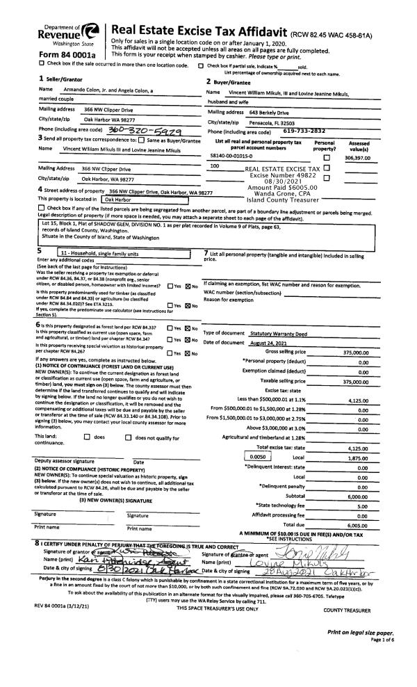 | Mailing Address: | 14888 STATE ROUTE 525 LANGLEY, WA 98260 | % Ownership: | 100.0000000000% |