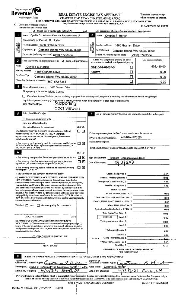 | Mailing Address: | PATRICIA JOY MCMAHON 2920 HI CREST RD LANGLEY, WA 98260-9768 | % Ownership: | 100.0000000000% |