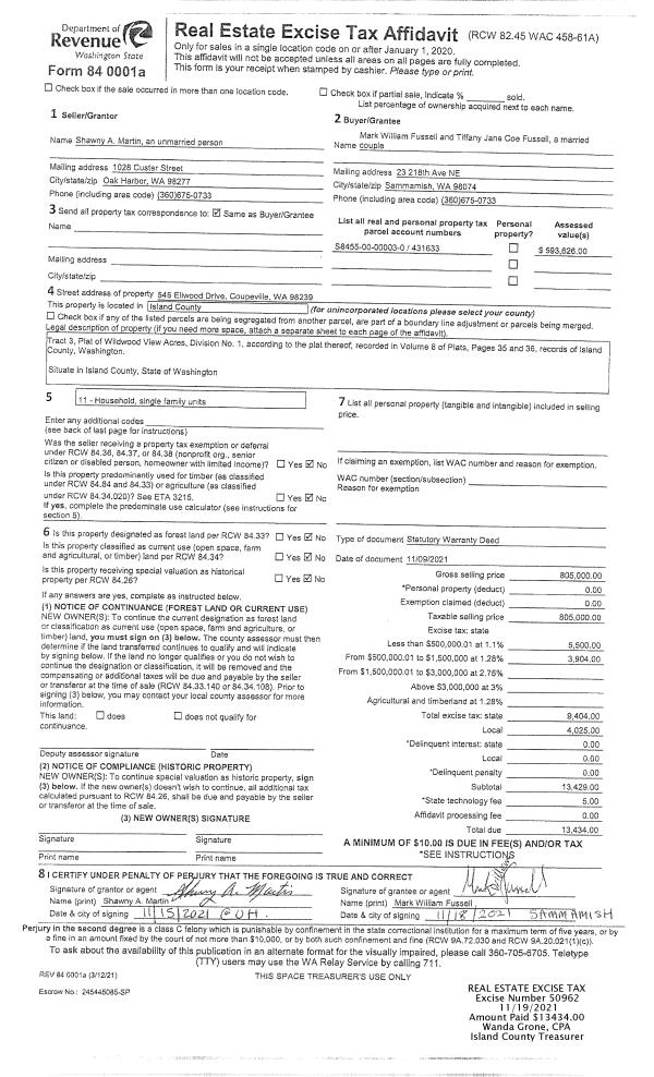 | Mailing Address: | 2924 HI CREST RD LANGLEY, WA 98260 | % Ownership: | 100.0000000000% |