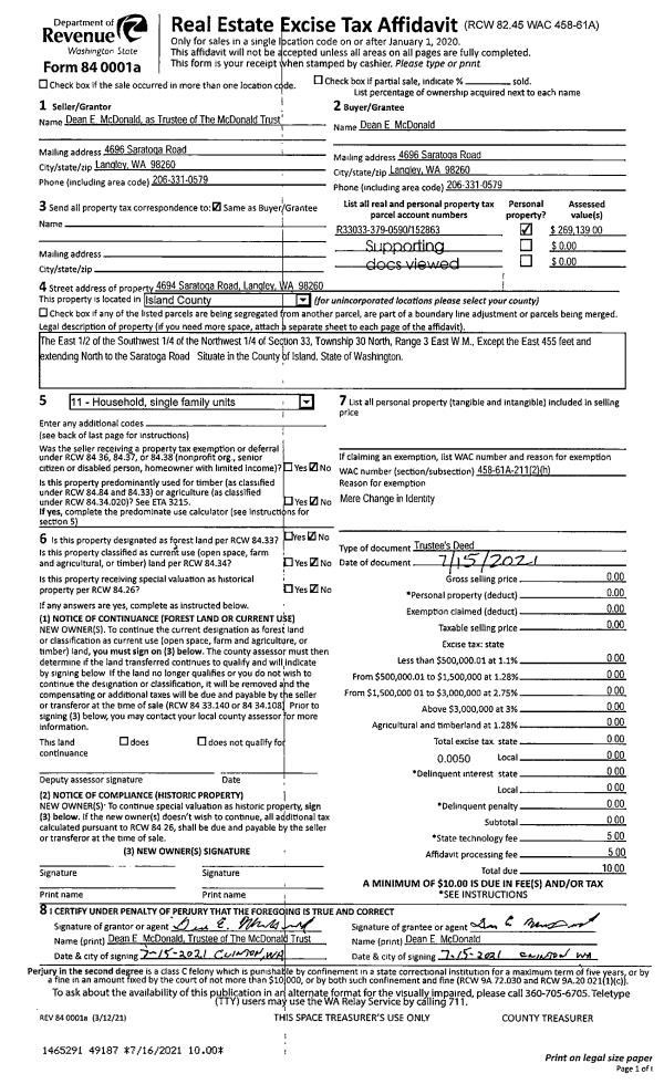 | Mailing Address: | 5362 MERCER DR LANGLEY, WA 98260 | % Ownership: | 100.0000000000% |