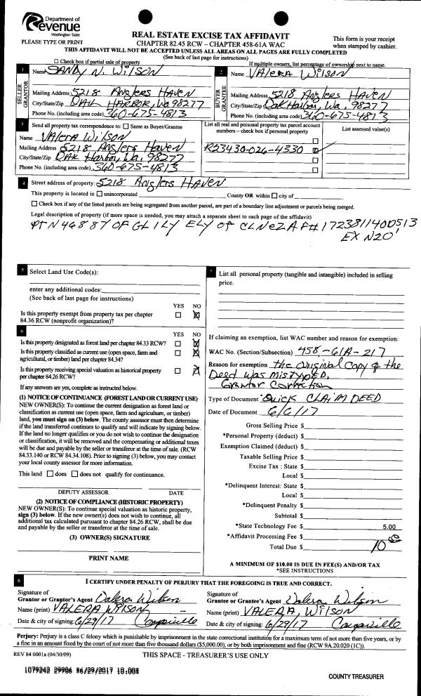 | Mailing Address: | TINA RESPONTE 890 SMITH RD CAMANO ISLAND, WA 98282 | % Ownership: | 100.0000000000% |