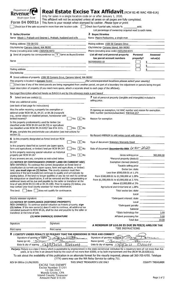 | Tax Area: | 700 - APPRAISER-S Whid Schl Dist, in town of Langley | Land Use Code | 11 |