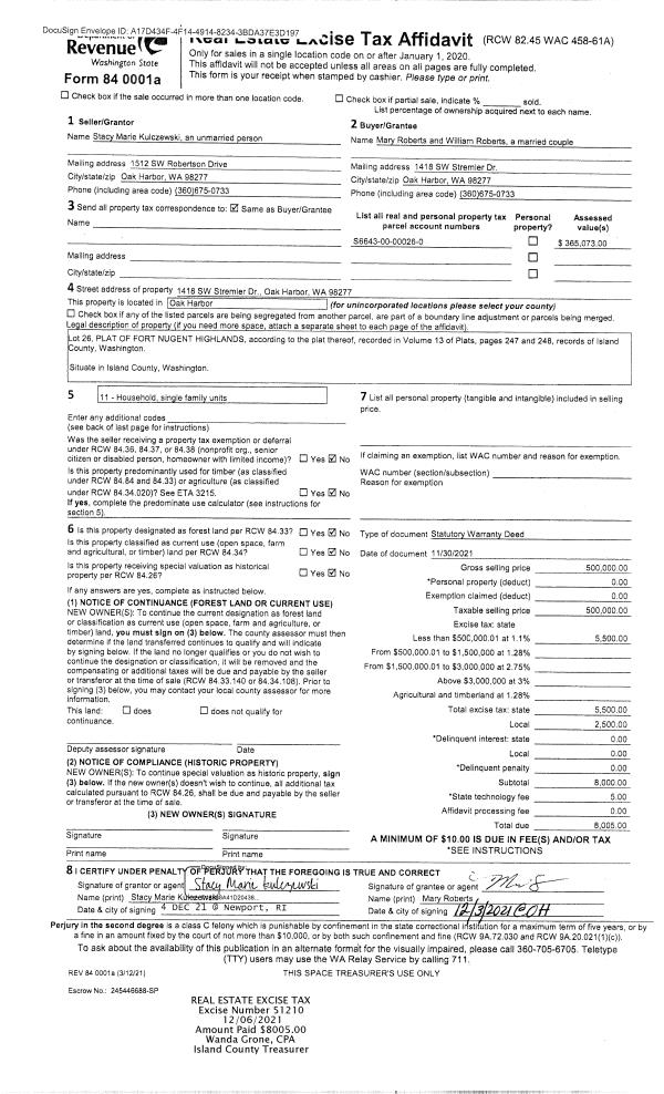 | Mailing Address: | DIANE LYNN SORENSON 514 3RD ST LANGLEY, WA 98260 | % Ownership: | 100.0000000000% |