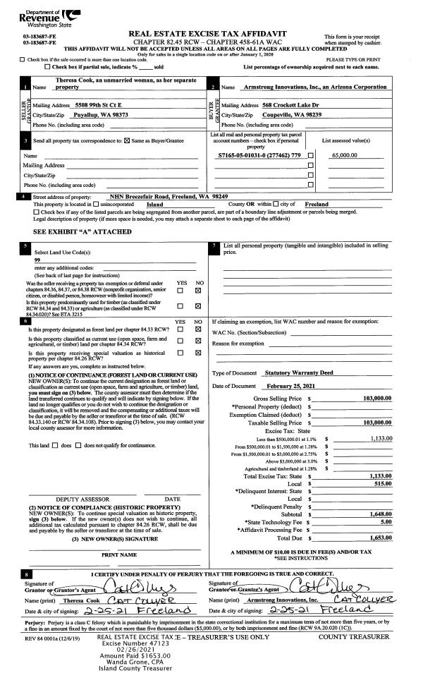 | Mailing Address: | 531 2ND ST LANGLEY, WA 98260 | % Ownership: | 100.0000000000% |