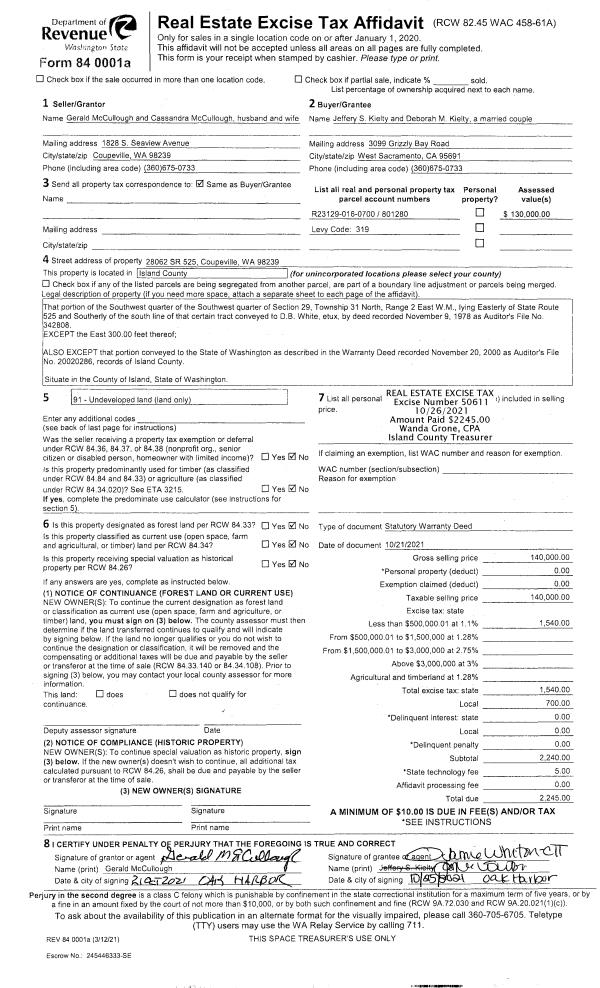 | Mailing Address: | 6135 PIONEER PARK PLACE LANGLEY, WA 98260-9728 | % Ownership: | 100.0000000000% |