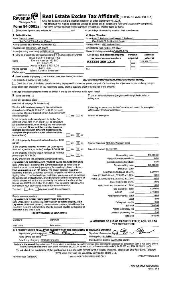 | Mailing Address: | 253 HARRINGTON RD COUPEVILLE, WA 98239 | % Ownership: | 100.0000000000% |