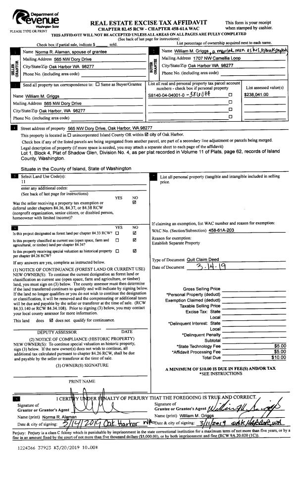 | 7 | 10/01/1994 | WD | Warranty Deed | TREECE, GLEN E | REVELL, RICHARD A | | | $48,000.00 | 44196 | 94021590 |