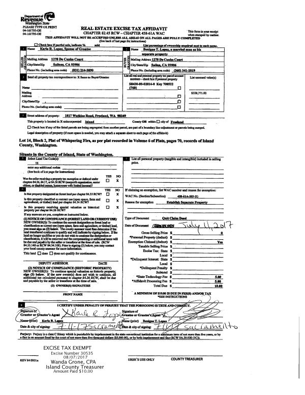 | Mailing Address: | LINDA P PETRILLO DANIEL M JORDAN CHRISTINE J JORDAN 1924 FIRCREST AVE COUPEVILLE, WA 98239 | % Ownership: | 100.0000000000% |