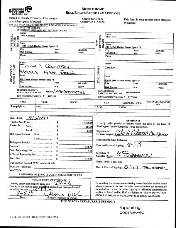 | Mailing Address: | 1972 FIRCREST AVE COUPEVILLE, WA 98239 | % Ownership: | 100.0000000000% |