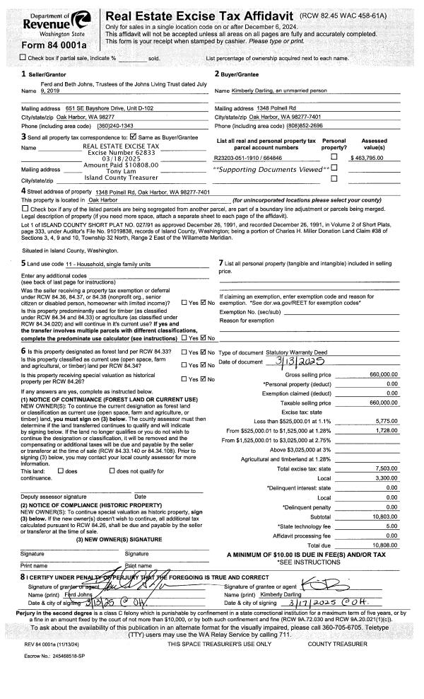 | Mailing Address: | 1770 FIRCREST AVE COUPEVILLE, WA 98239-9645 | % Ownership: | 100.0000000000% |