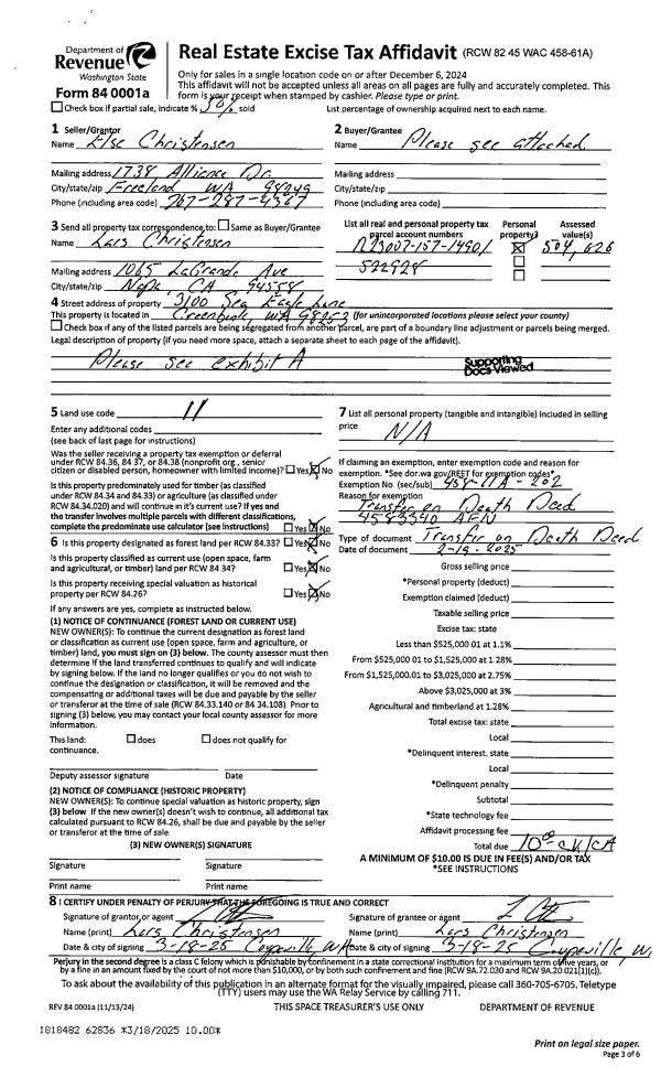 | Mailing Address: | DONNA J DETAMORE 1804 FIRCREST AVE COUPEVILLE, WA 98239 | % Ownership: | 100.0000000000% |