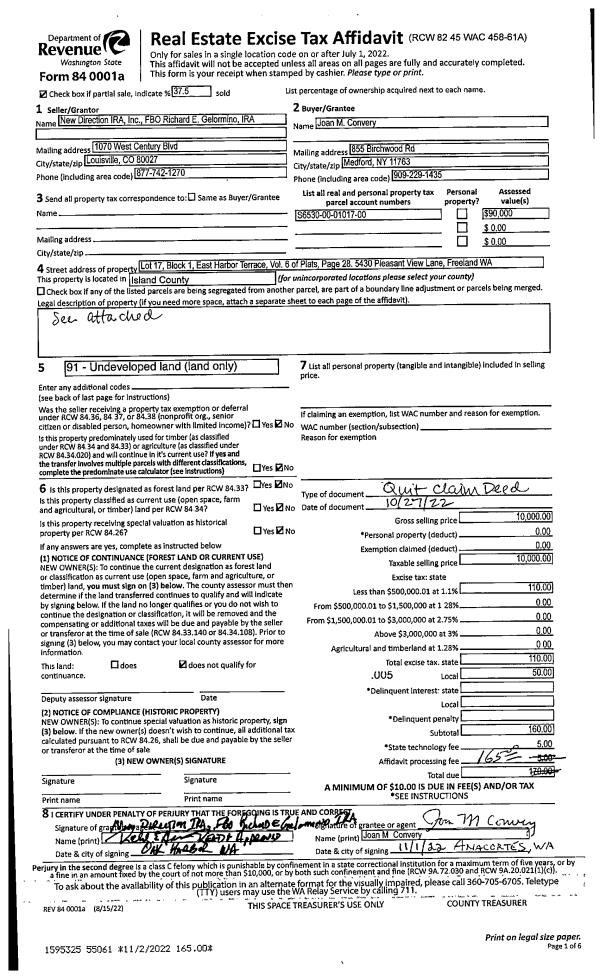 | Mailing Address: | PO BOX 37 FREELAND, WA 98249 | % Ownership: | 100.0000000000% |