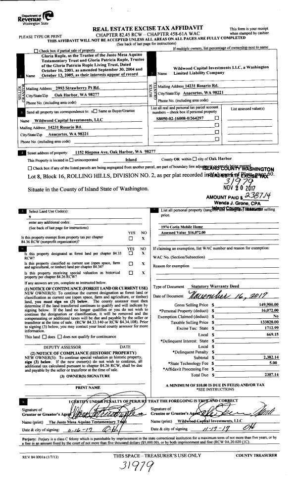 | 1 | 09/16/2017 | WD | Warranty Deed | PRICE, SCOTT | NATURAL ART PARK, LLC | | | $0.00 | 31323 | 4431166 |
