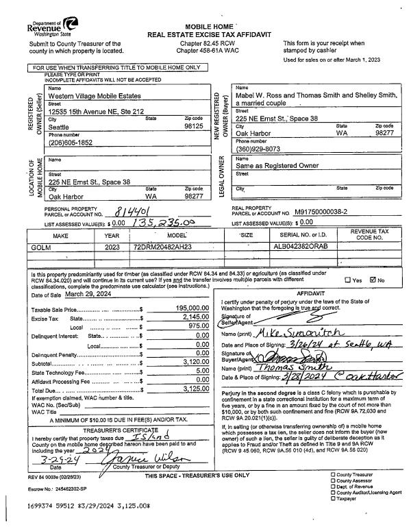 | 1 | 10/31/2023 | WD | Warranty Deed | VER ELLEN, PATRICIA | ENTIAT OUTLOOK, LLC | | | $30,000.00 | 58427 | 4566438 |