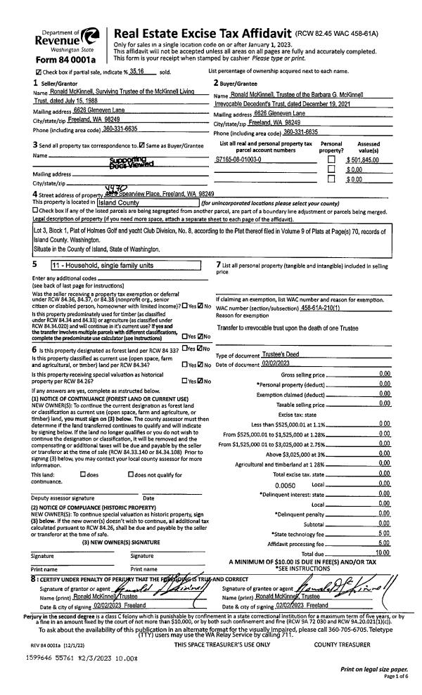 | Mailing Address: | PO BOX 326 COUPEVILLE, WA 98239 | % Ownership: | 100.0000000000% |