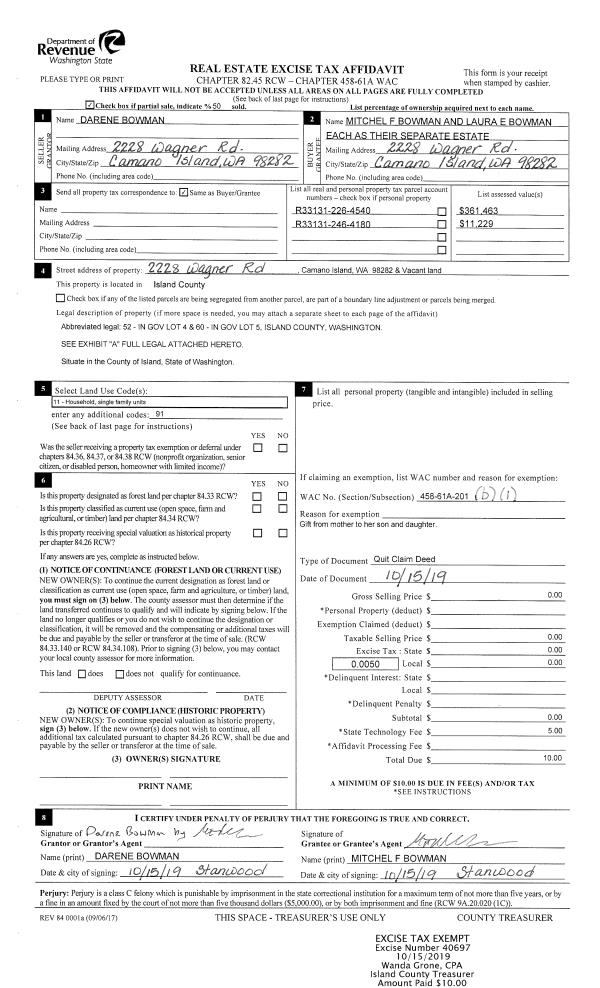 | Tax Area: | 719 - APPRAISER-S Whid Schl Dist, outside Langley, vacant & 50 acres or less | Land Use Code | 99 |