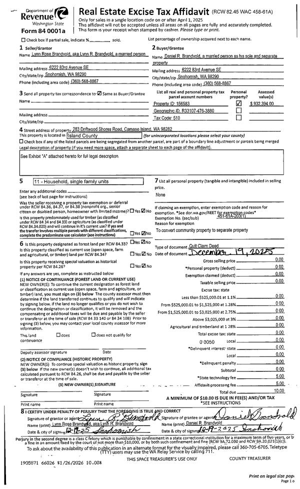 | Mailing Address: | 12628 MARINE DR TULALIP, WA 98271-6011 | % Ownership: | 100.0000000000% |
