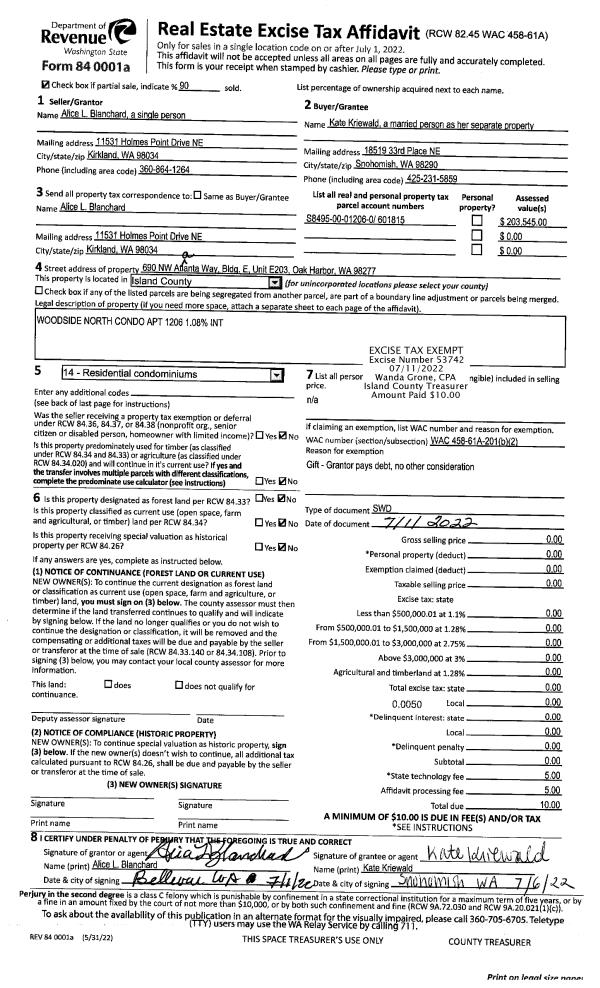 | Mailing Address: | TISHA LOVE TAYLOR, A LIFE ESTATE 7115 W MARGINAL WAY SW SEATTLE, WA 98106 | % Ownership: | 100.0000000000% |