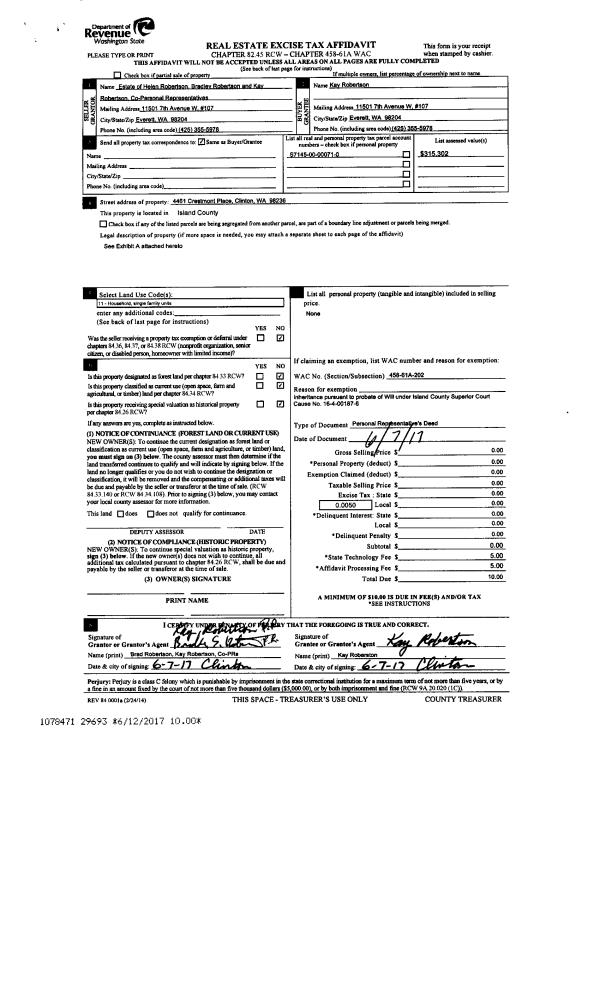 | Mailing Address: | 835 LIVINGSTON BAY SHORE DR CAMANO ISLAND, WA 98282 | % Ownership: | 100.0000000000% |