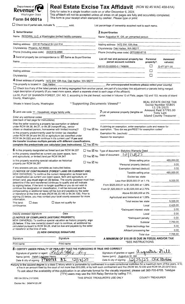 | Tax Area: | 710 - APPRAISER-S Whid Schl Dist, outside Langley, improved & 1 acre or less | Land Use Code | 11 |