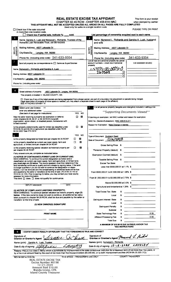 | Mailing Address: | 5305 APRIL DR LANGLEY, WA 98260 | % Ownership: | 100.0000000000% |