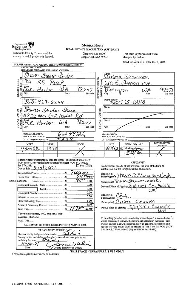 | 1 | 10/23/2020 | MANHOME | Manufactured Home | HENLEY WA 15, LLC | THACKER, PAUL | | | $219,000.00 | 45396 | |