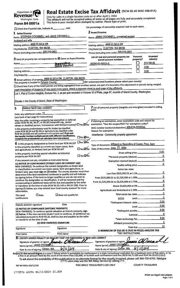 | Mailing Address: | LINDA SUE INIONS LEIF ERIC HOLMES 27927 86TH DR NW STANWOOD, WA 98292 | % Ownership: | 100.0000000000% |
