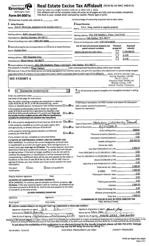 | Mailing Address: | JANE K. DURAN AND ELIZABETH DURAN 1391 LAKEWOOD DR CAMANO ISLAND, WA 98282 | % Ownership: | 100.0000000000% |