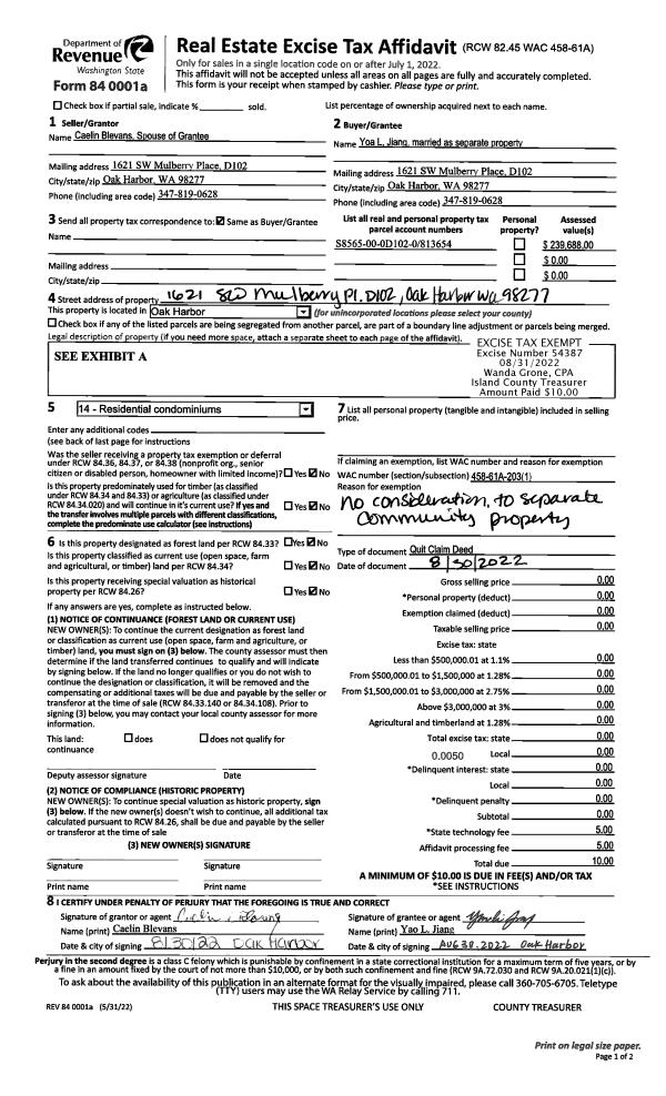 | Mailing Address: | MOHAMMED SHAIYAAZ ANGELICA AGUILAR 1383 LAKEWOOD DR CAMANO ISLAND, WA 98282 | % Ownership: | 100.0000000000% |