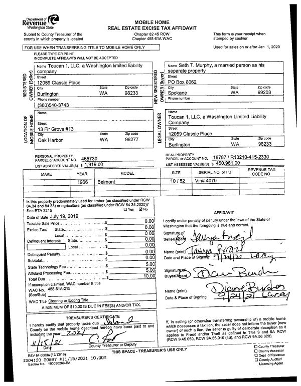 | Mailing Address: | MORGAN HOUTMAN ROSLYN HOUTMAN 1438 LAKEWOOD DR CAMANO ISLAND, WA 98282 | % Ownership: | 100.0000000000% |