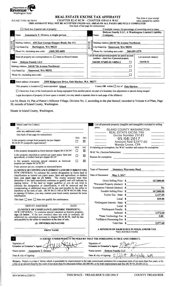 | Mailing Address: | 1872 LAKE DR CAMANO ISLAND, WA 98282 | % Ownership: | 100.0000000000% |