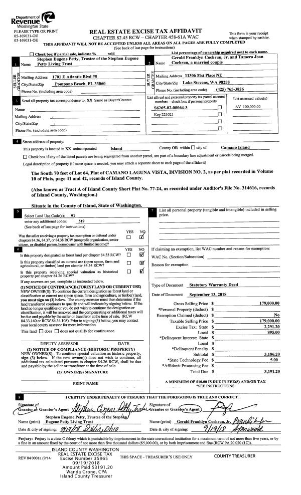 | Mailing Address: | 1406 LAKEWOOD DR CAMANO ISLAND, WA 98282 | % Ownership: | 100.0000000000% |