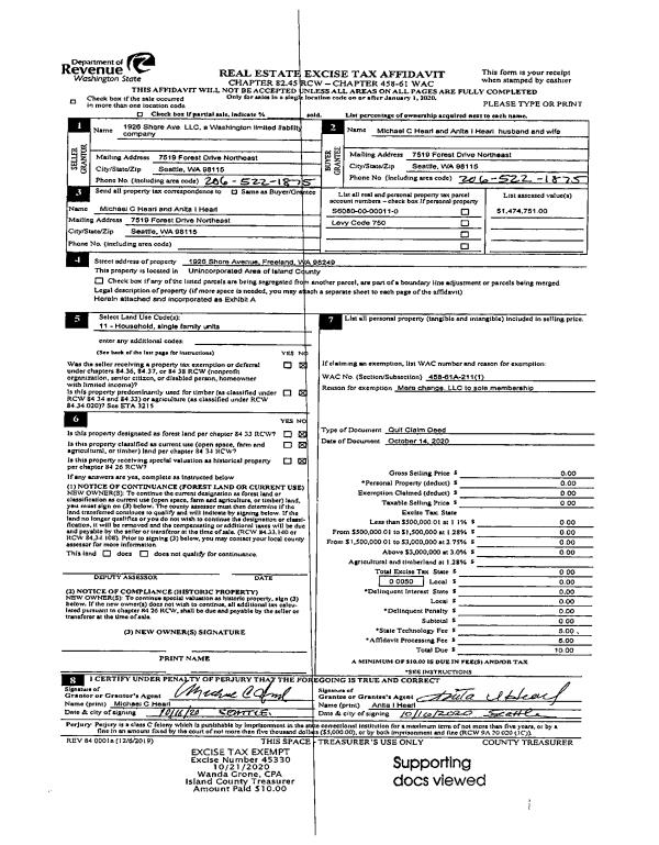 | Mailing Address: | 1714 VINE MAPLE LN CAMANO ISLAND, WA 98282-7529 | % Ownership: | 100.0000000000% |