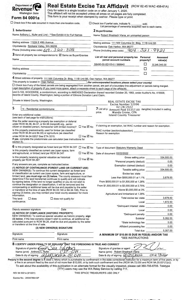 | Mailing Address: | 1469 LAKE DR CAMANO ISLAND, WA 98282 | % Ownership: | 100.0000000000% |