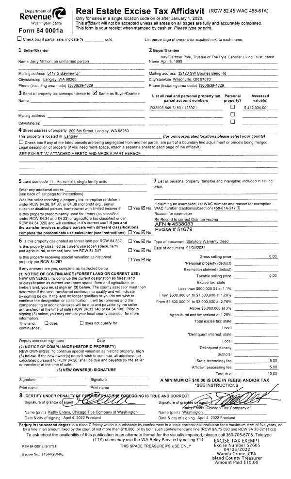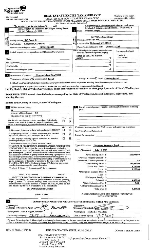 | Mailing Address: | 1501 LAKE DR CAMANO ISLAND, WA 98282 | % Ownership: | 100.0000000000% |
