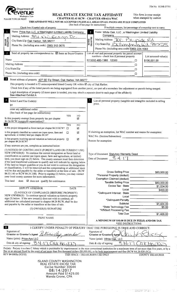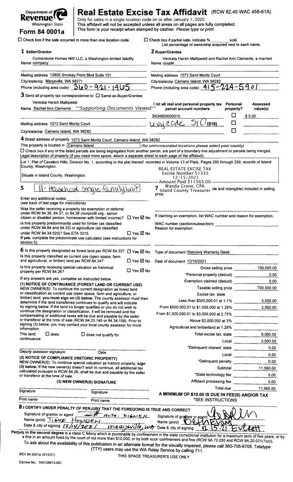 | Mailing Address: | SIERRA LEIVA-BATRES 1559 LAKE DR CAMANO ISLAND, WA 98282 | % Ownership: | 100.0000000000% |